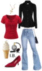 Casual Chic With Denim: Pair a peplum cardigan with a red vintage-style top and high-waisted denim flare jeans for a balanced, feminine look that highlights the waist. Perfect for everyday wear!